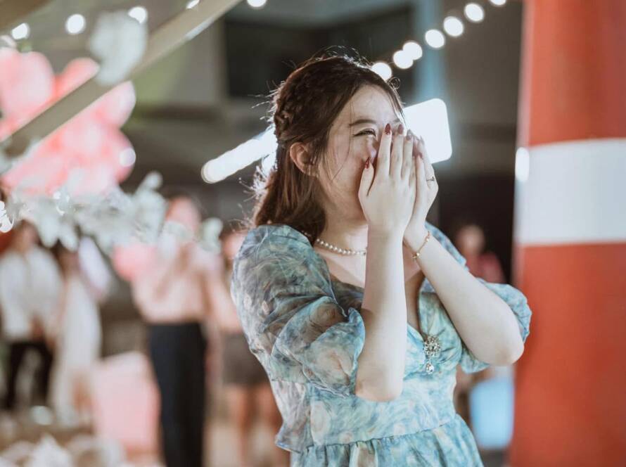 現場不一定要一群人圍觀,有時候一段親友錄的影片、或求婚過程家人、她最好的朋友突然現身,就能讓她直接爆哭。