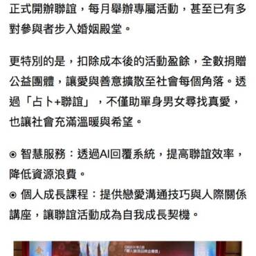 導入 AI智慧配對、減少紙本浪費,並加入戀愛與人際成長課程,讓每位參加者都能遇見愛,也遇見更好的自己。