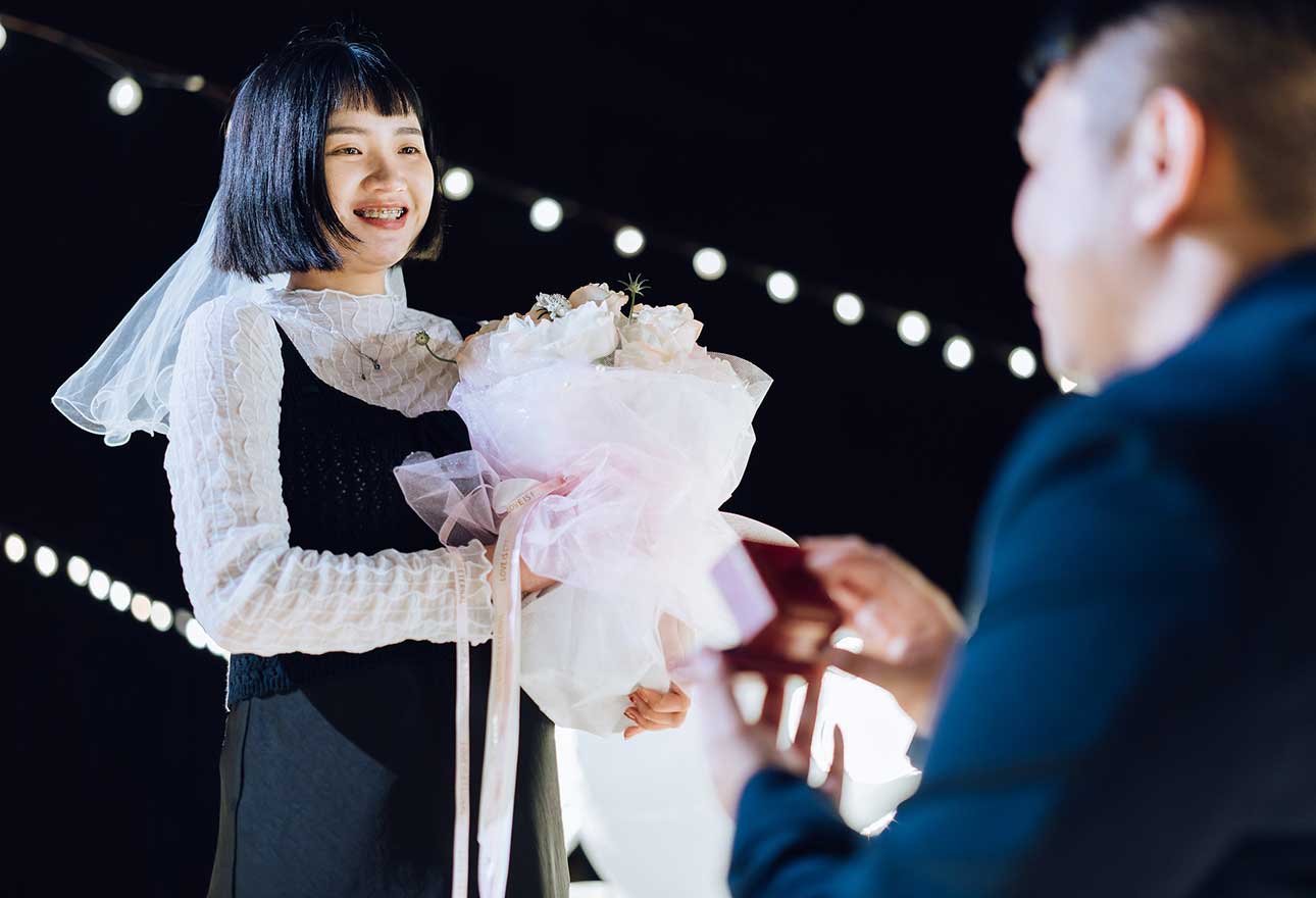 客製影音服務 『 讓每一刻的愛都被看見 』求婚是專屬你們的美好時光,我們希望每個畫面,都能留住感動。從準備到表達,每個過程都承載你的心意,這份幸福不只停留在當下,而是能一遍遍被重溫。 專屬邀請函從邀請的那一刻起,你的用心就被看見。迎賓牌&照片祝福牆營造溫暖互動氛圍,讓每位現場賓客都融入你們的故事。告白 MV將你的心意化作動人影像。親友祝福影片收錄每一句溫暖話語。現場直播使遠方親友,也能即時參與這份幸福。精剪紀念影片每一個笑容與淚光,都成為永恆回憶。