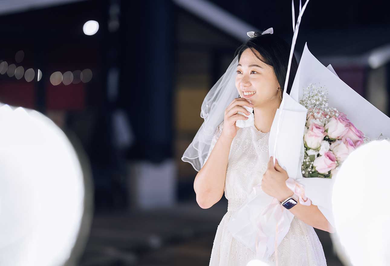 那些能讓場景瞬間「加分」的小細節,就交給我們!從字母燈、紅毯、驚喜禮物盒、手拿牌、親友玫瑰花、泡泡機、頭紗、領結、到各式主題的拍照小物,我們為您準備妥當,讓現場拍攝更有趣、也更有層次感。
