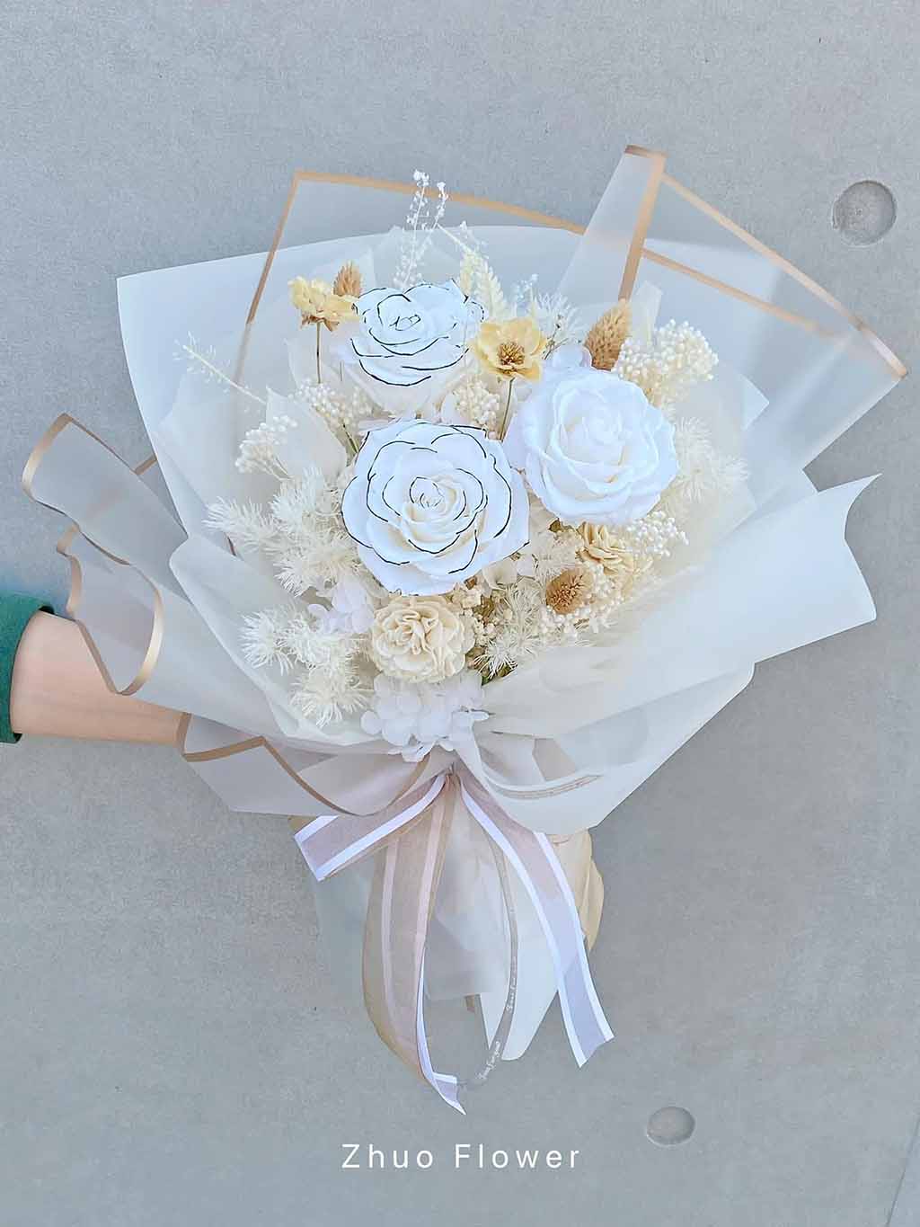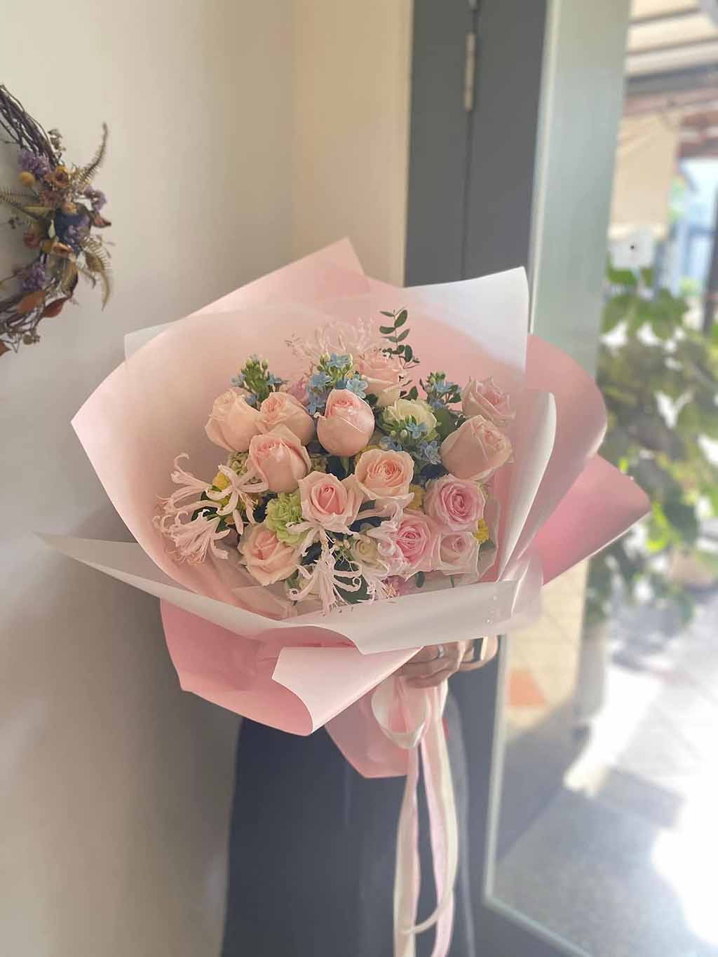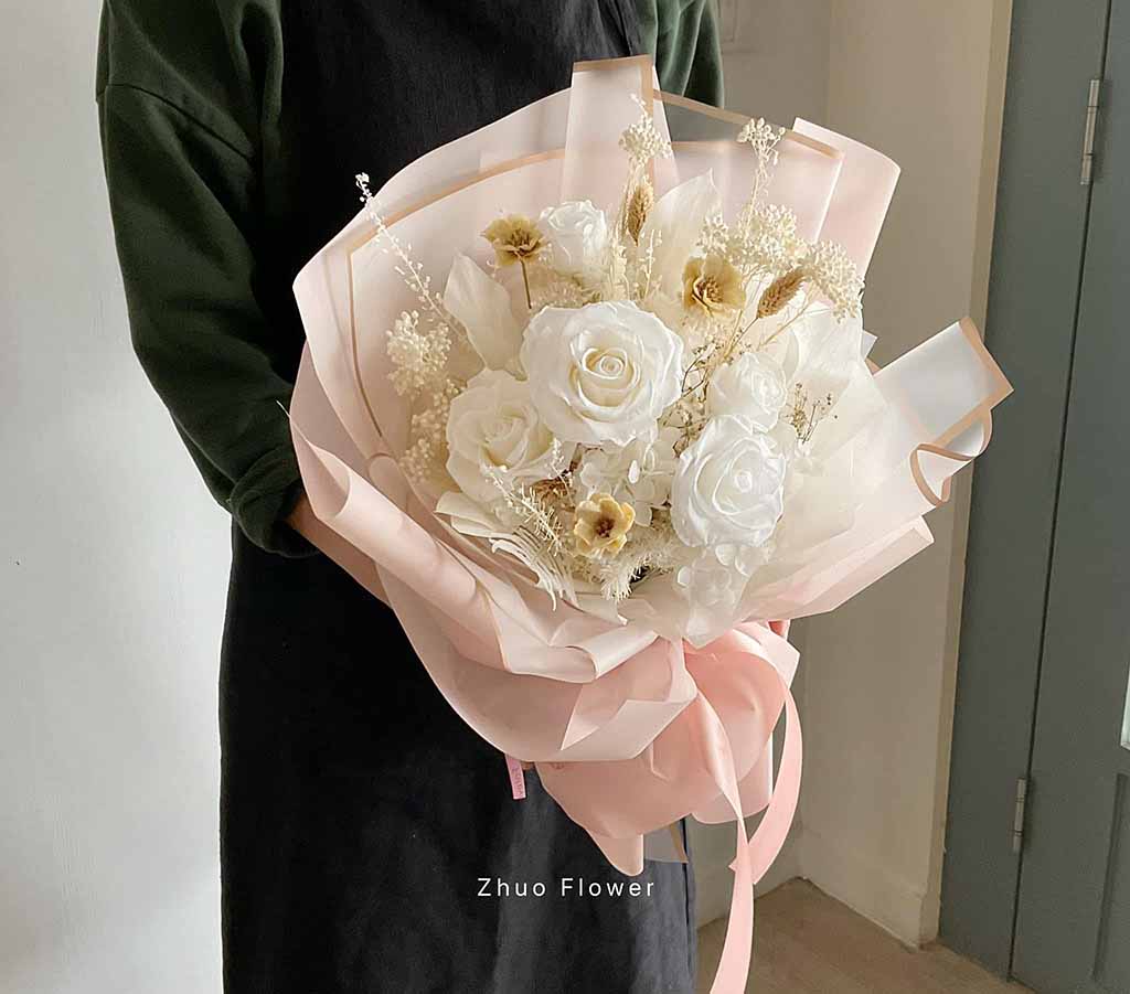 高訂求婚花束 一場完美的求婚,少不了一束花。因為那不只是道具,而是「你用心準備的證明」。我們知道求婚當天,你有太多事要顧。所以花束這件事,交給我們就好。海洋微光提供[ 高訂花束設計、代訂與送達現場服務 ] 無論是歐式花束、韓系簡約、浪漫玫瑰、夢幻滿天星,亦或與場景相呼應的專屬搭配款式,專業花藝師都能完整幫你呈現那份愛的細節。讓她一看到,就知道:這不是隨手買的花,而是「專屬於她的求婚花束」 她會愛上的那束花,由你親手挑選 夢幻粉、桃粉、裸粉 珍珠白 經典紅 香檳色、夕陽橘、蜂蜜黃 冰川藍 迷霧紫 珍珠白玫瑰 水蜜桃粉紅玫瑰 鮮紅玫瑰 微光守護,浪漫真情 訂購洽詢