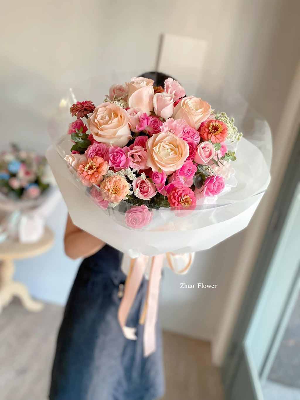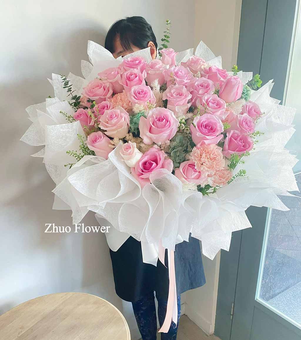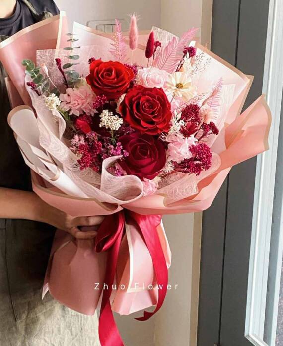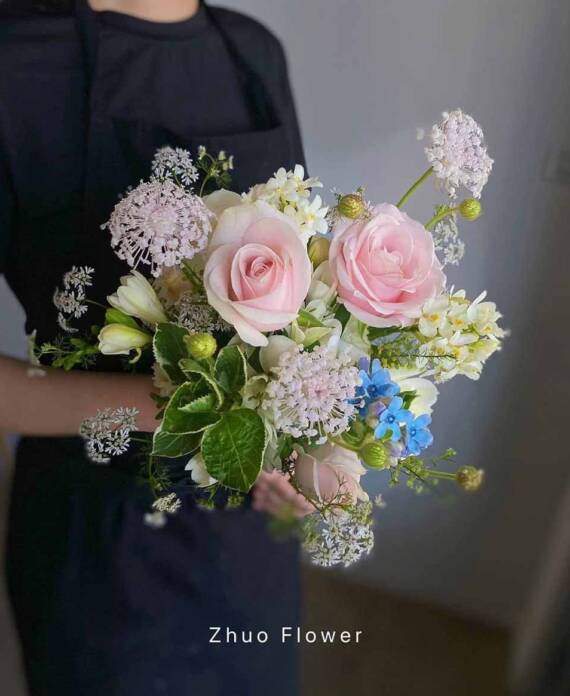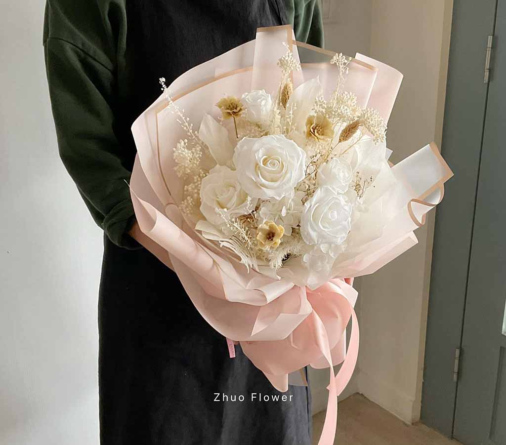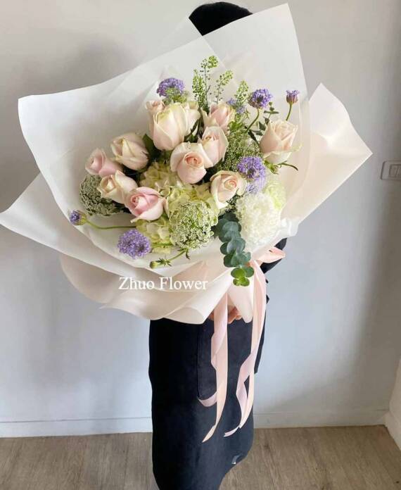 無論是歐式花束、韓系簡約、浪漫玫瑰、夢幻滿天星,亦或與場景相呼應的專屬搭配款式,專業花藝師都能完整幫你呈現那份愛的細節。