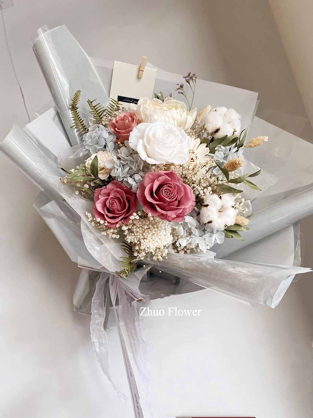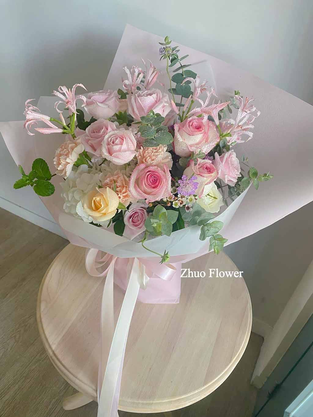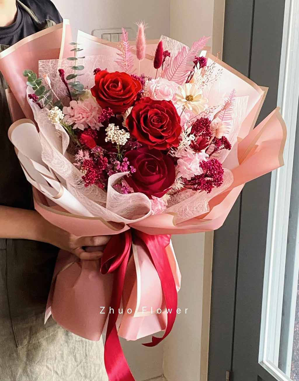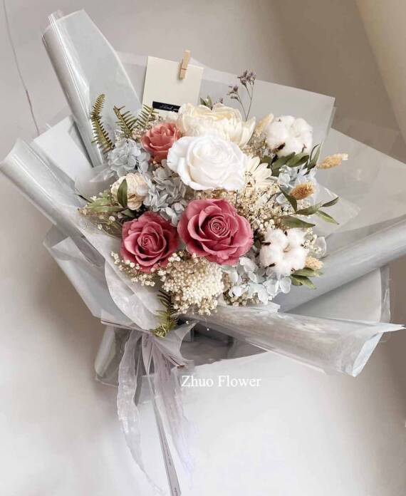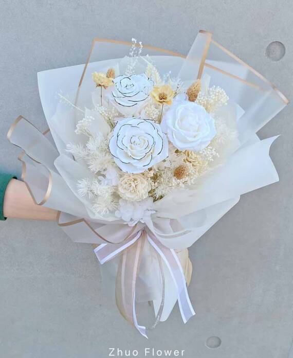 無論是歐式花束、韓系簡約、浪漫玫瑰、夢幻滿天星,亦或與場景相呼應的專屬搭配款式,專業花藝師都能完整幫你呈現那份愛的細節。